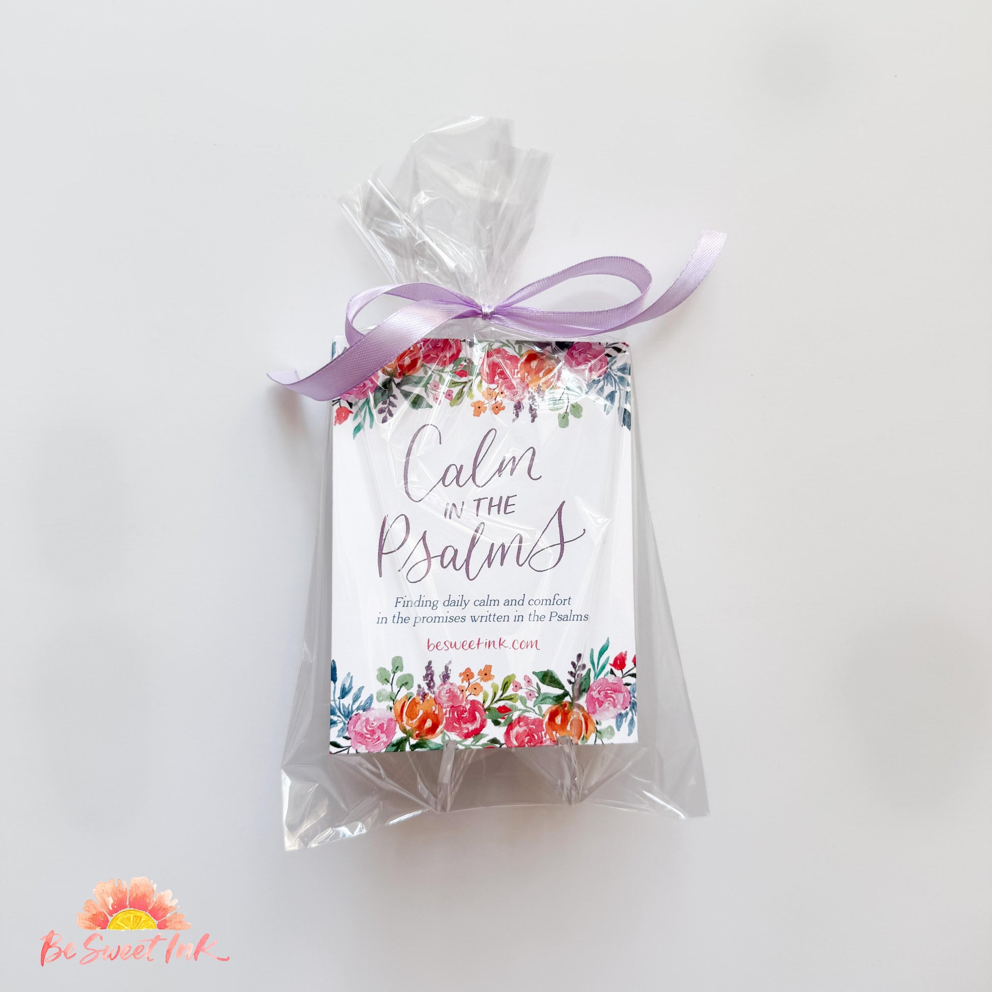 All “Calm in the Psalms” sets come gift wrapped in a cellophane bag and tied with a ribbon